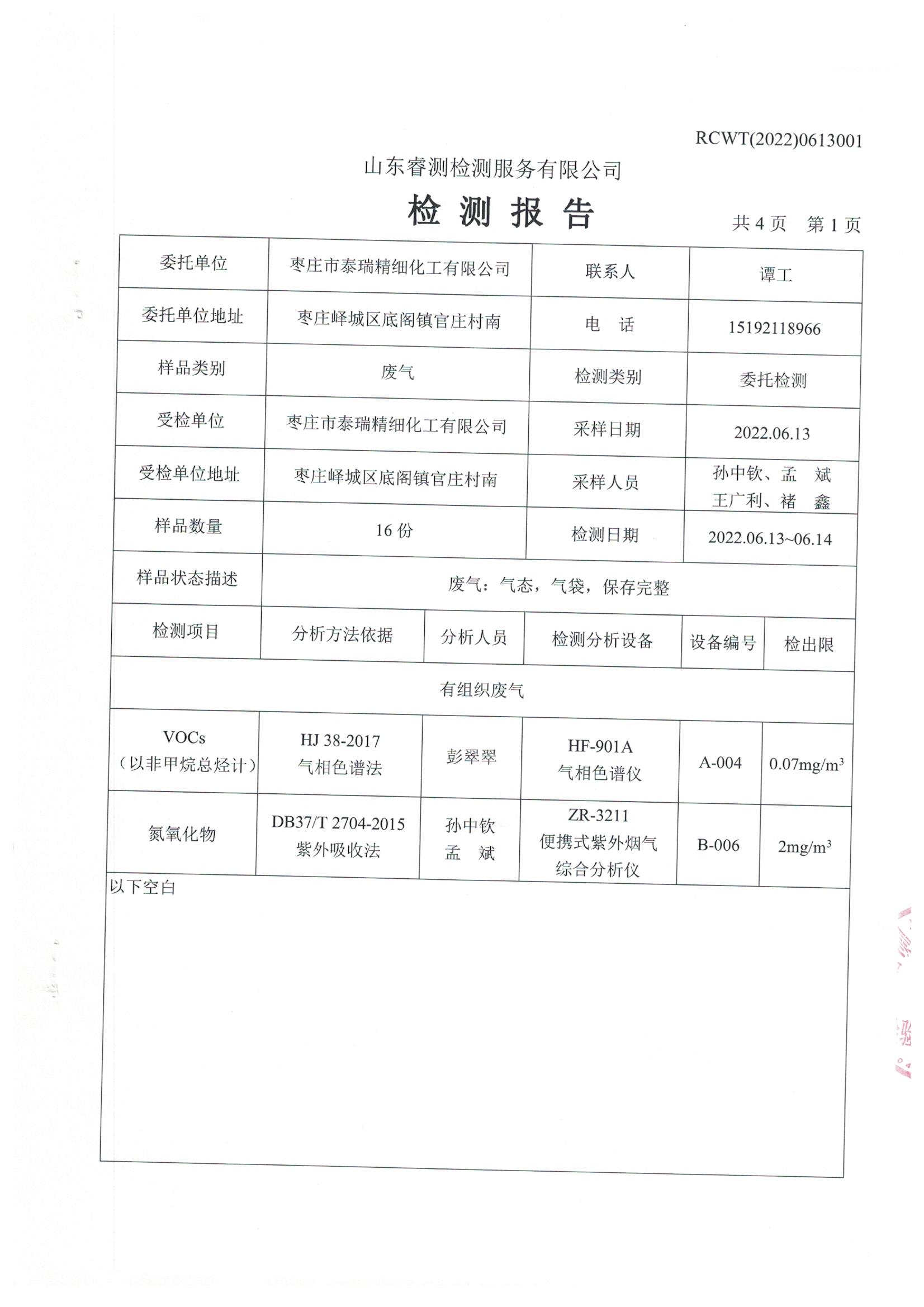 2022年6月份環(huán)境檢測報(bào)告