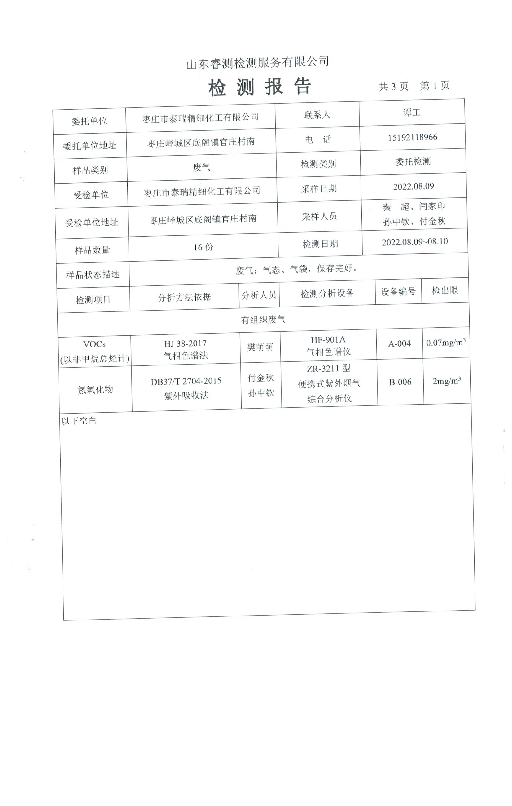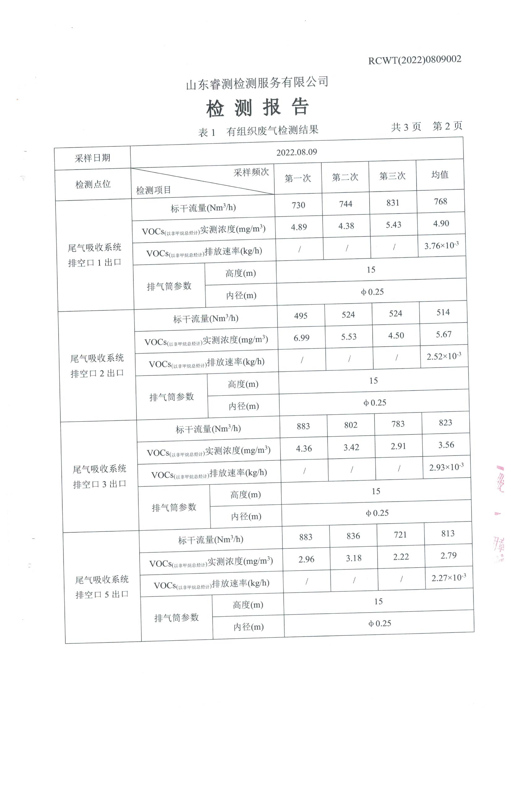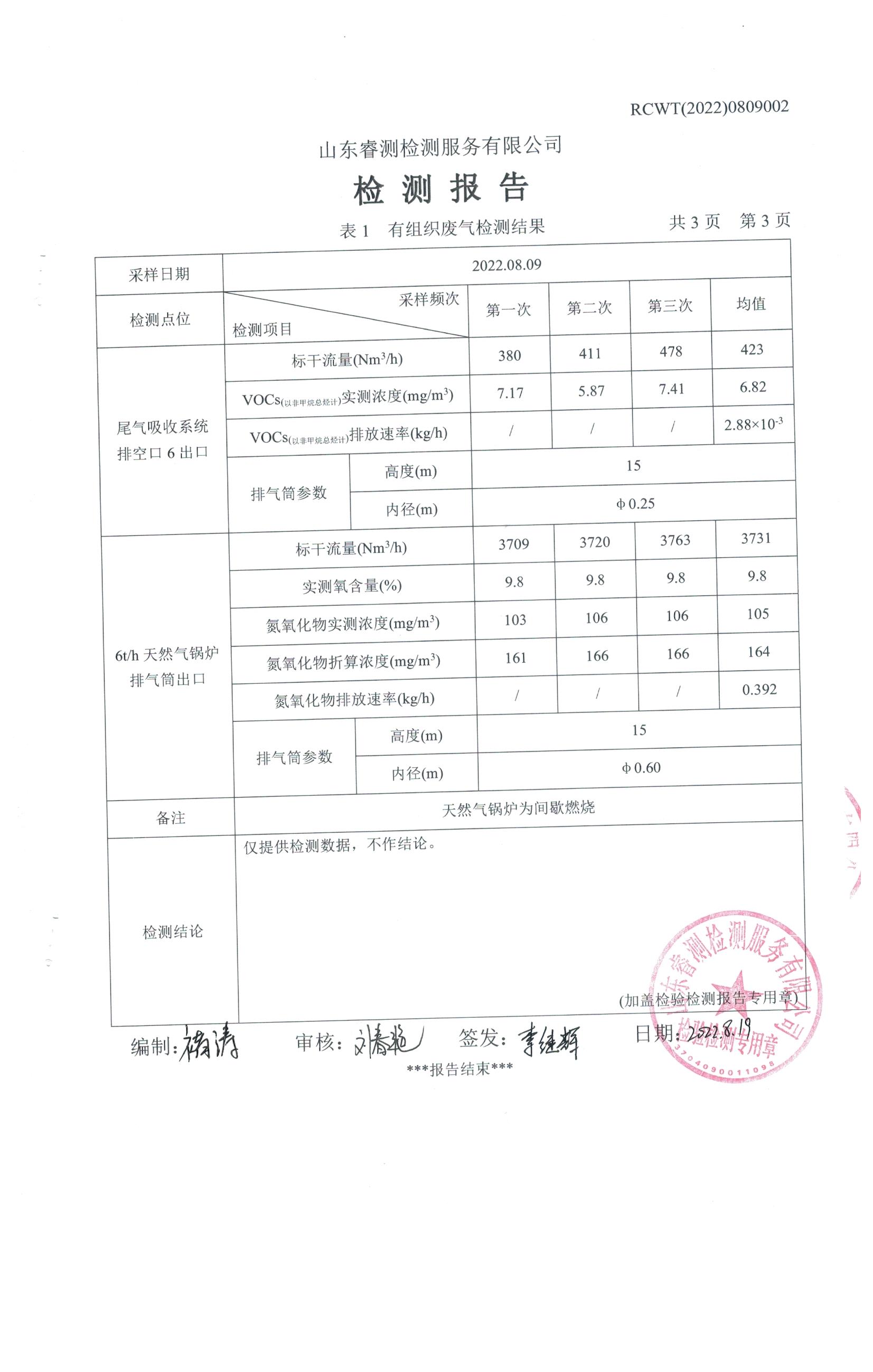 2022年8月份自行檢測報(bào)告