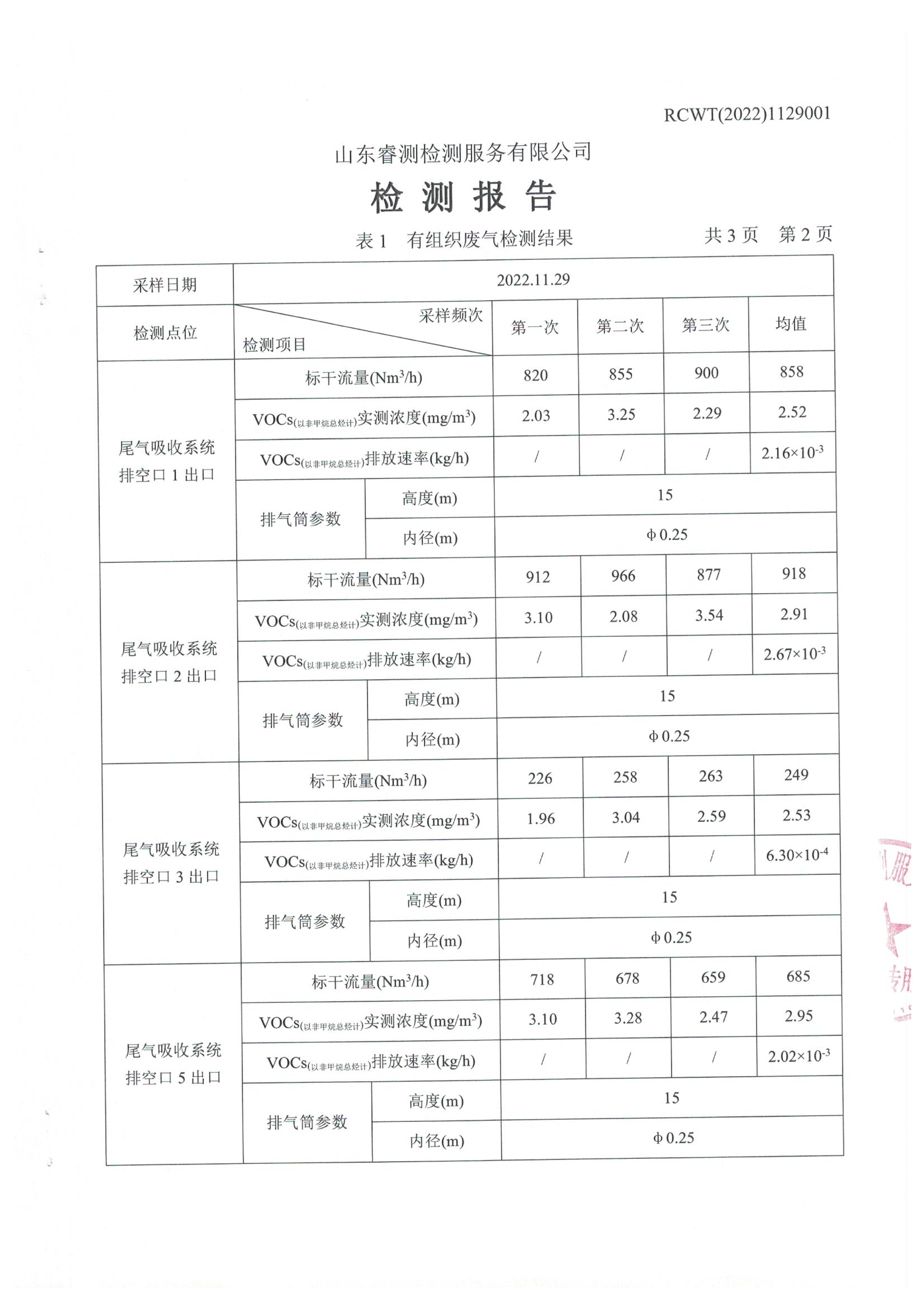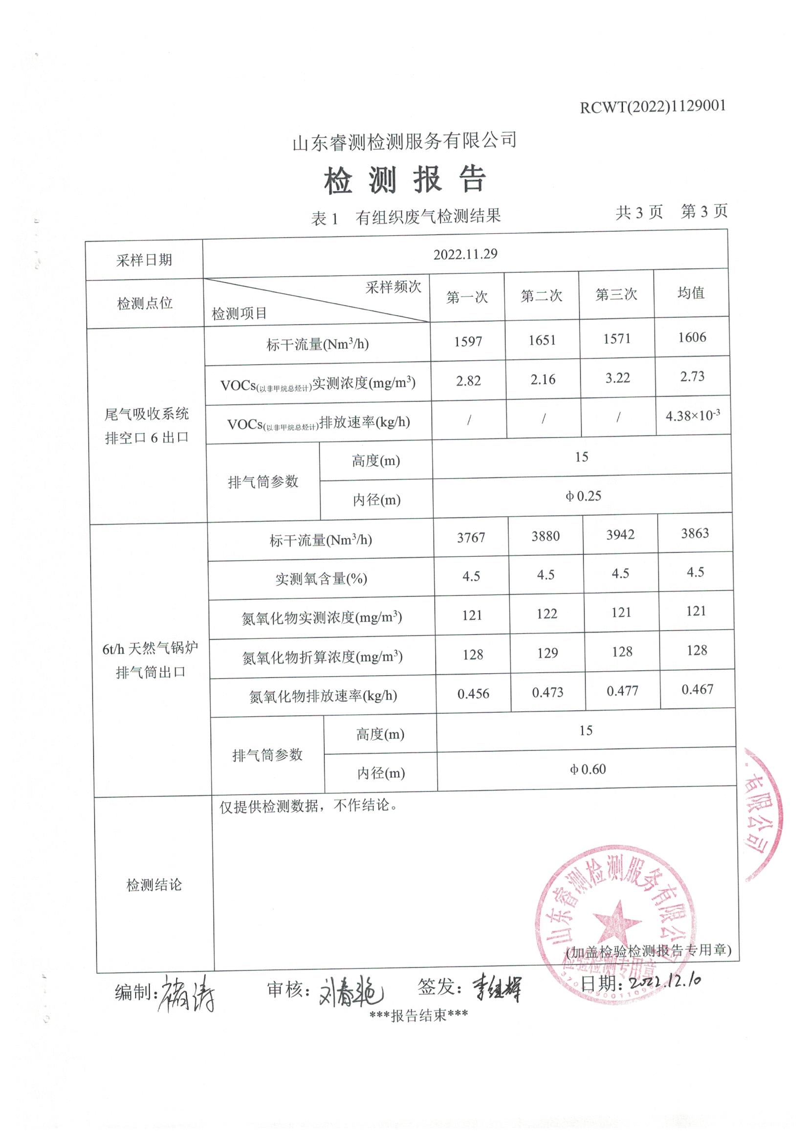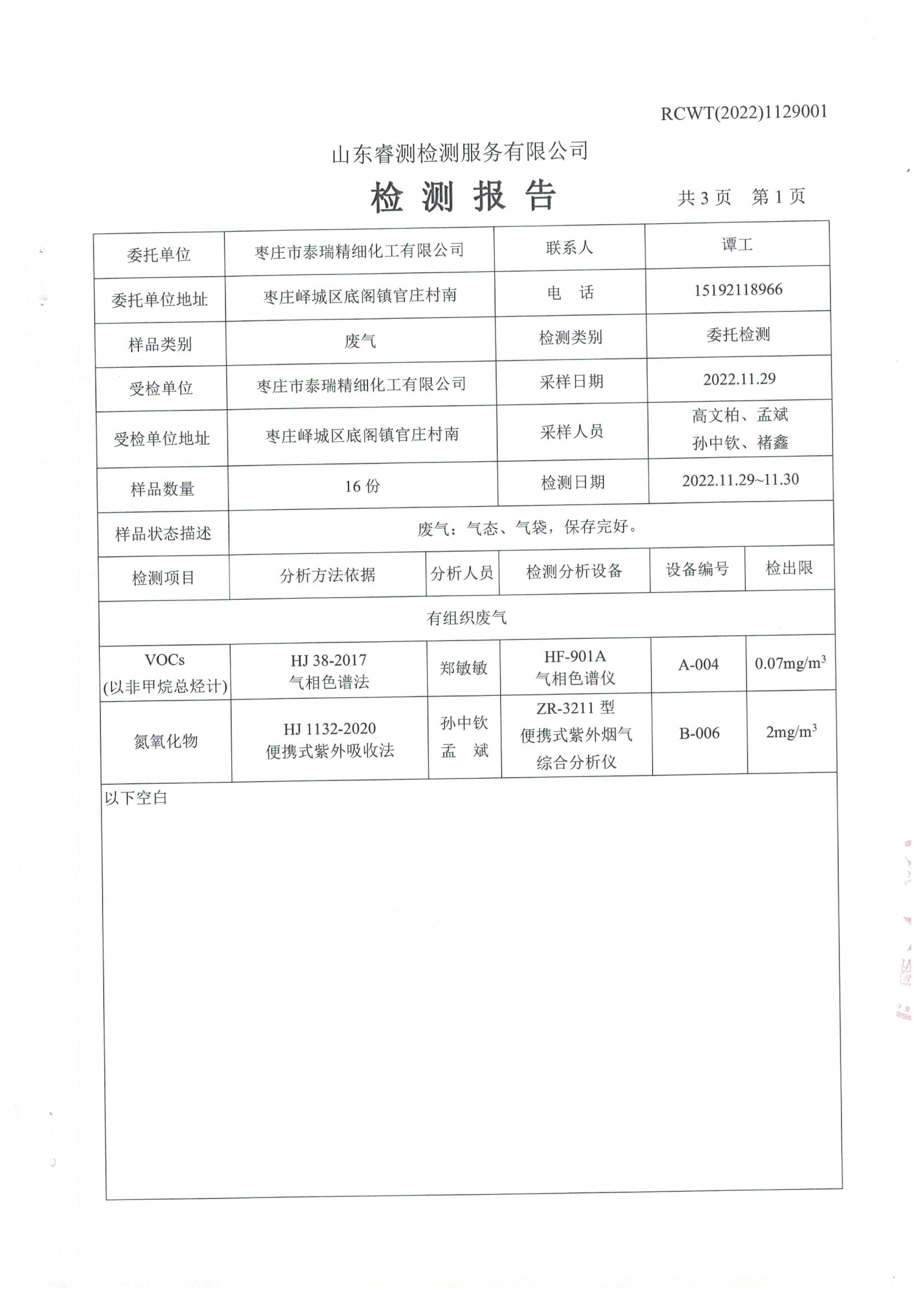 2022年11月份自行檢測報告