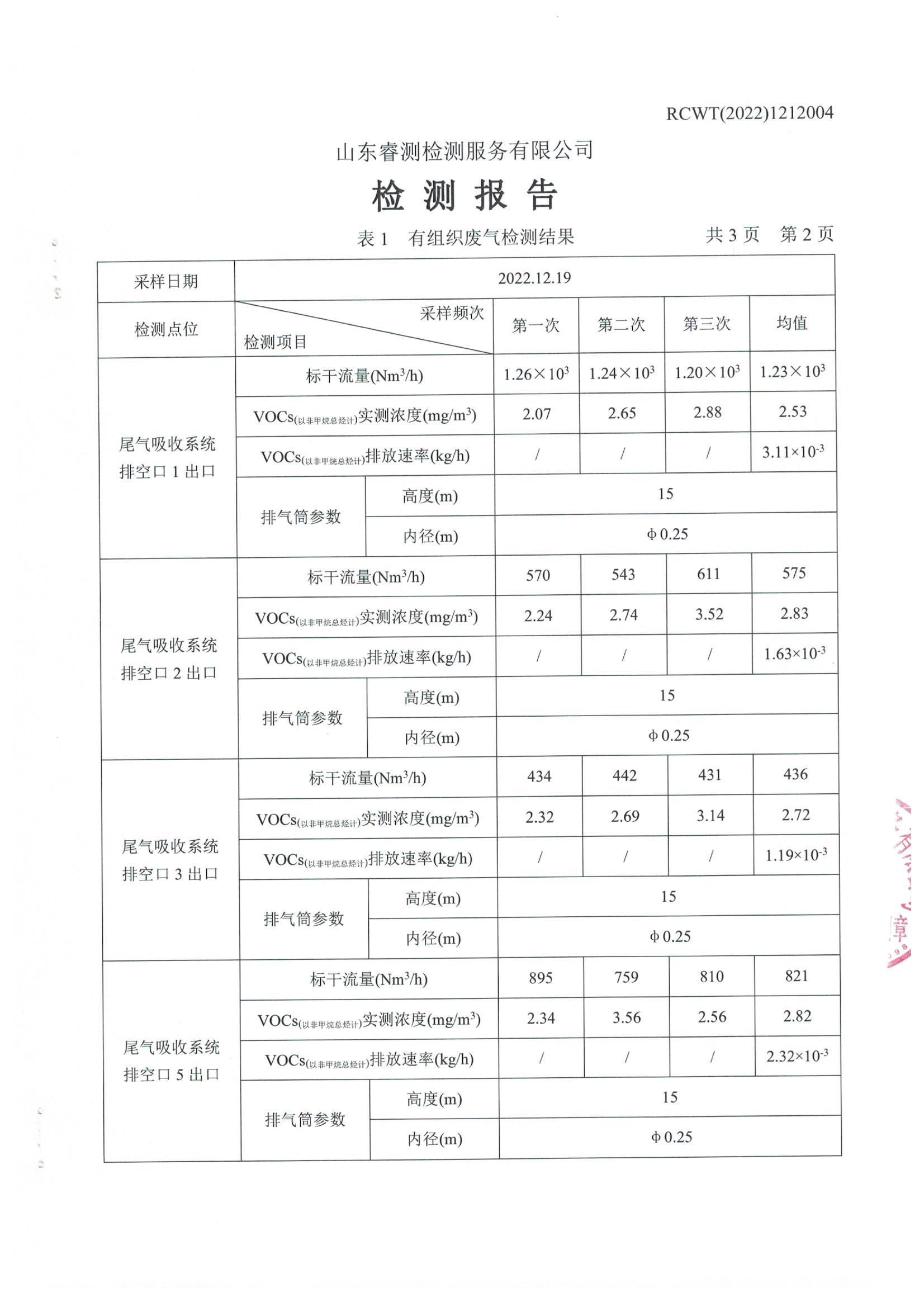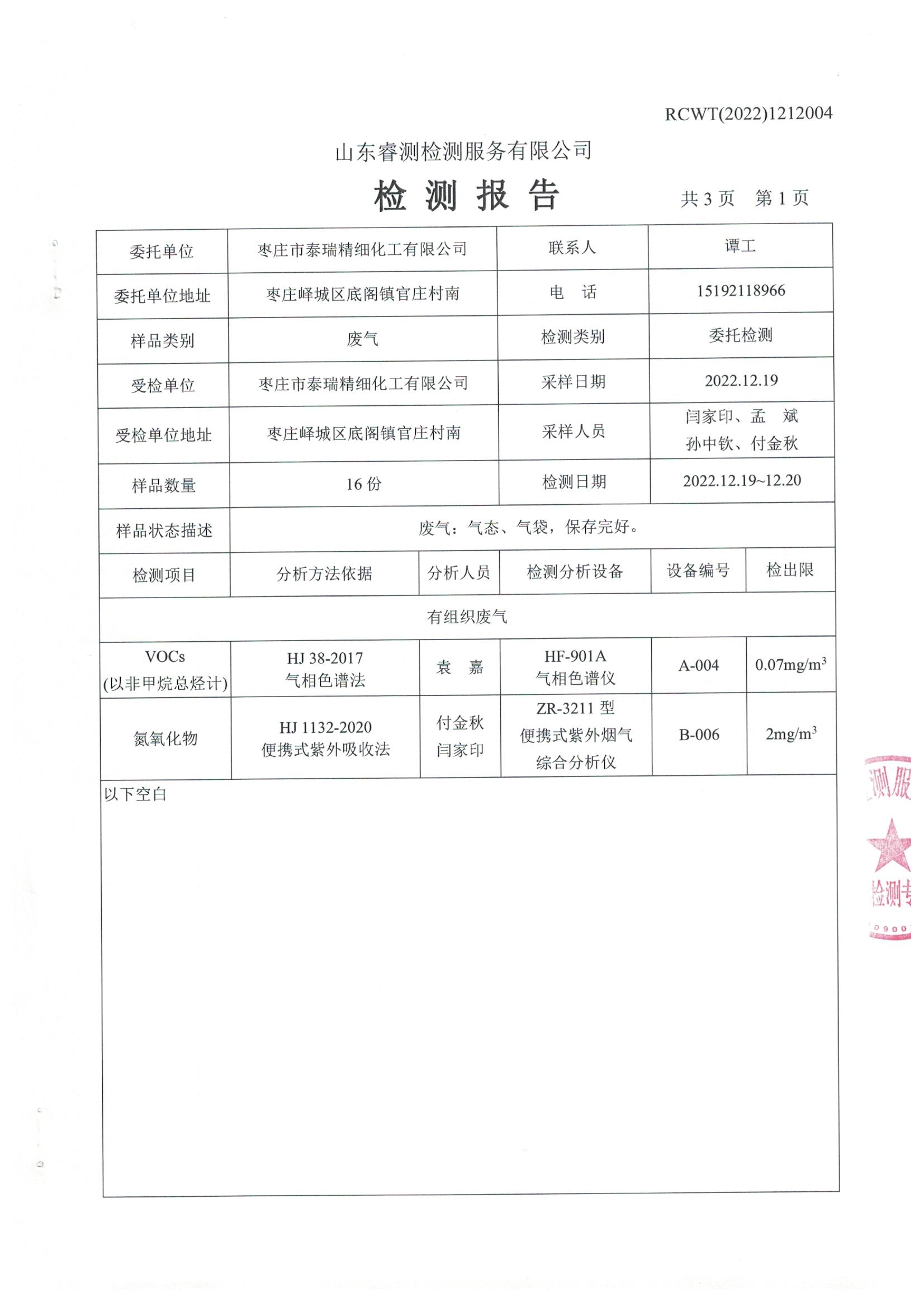 2022年12月份自行檢測(cè)報(bào)告