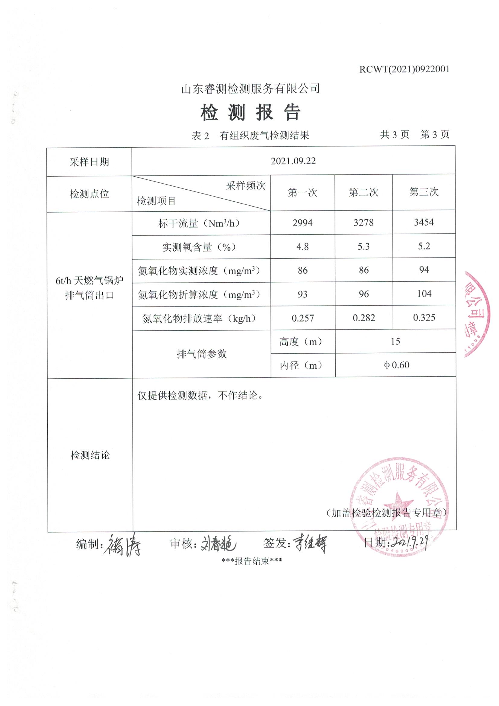 2021年9月份自行檢測報告