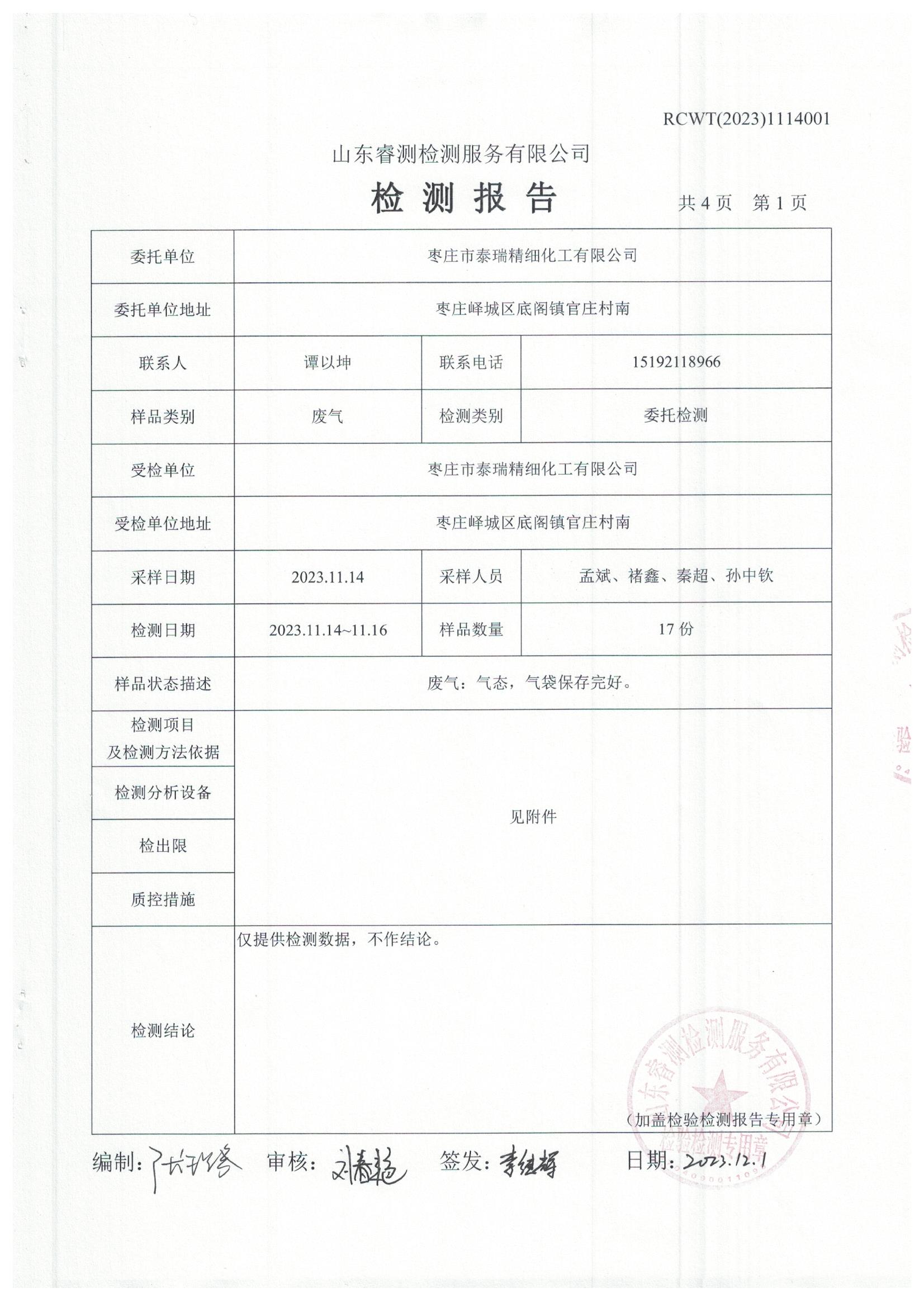 2023年第4季度(11月份)檢測(cè)報(bào)告