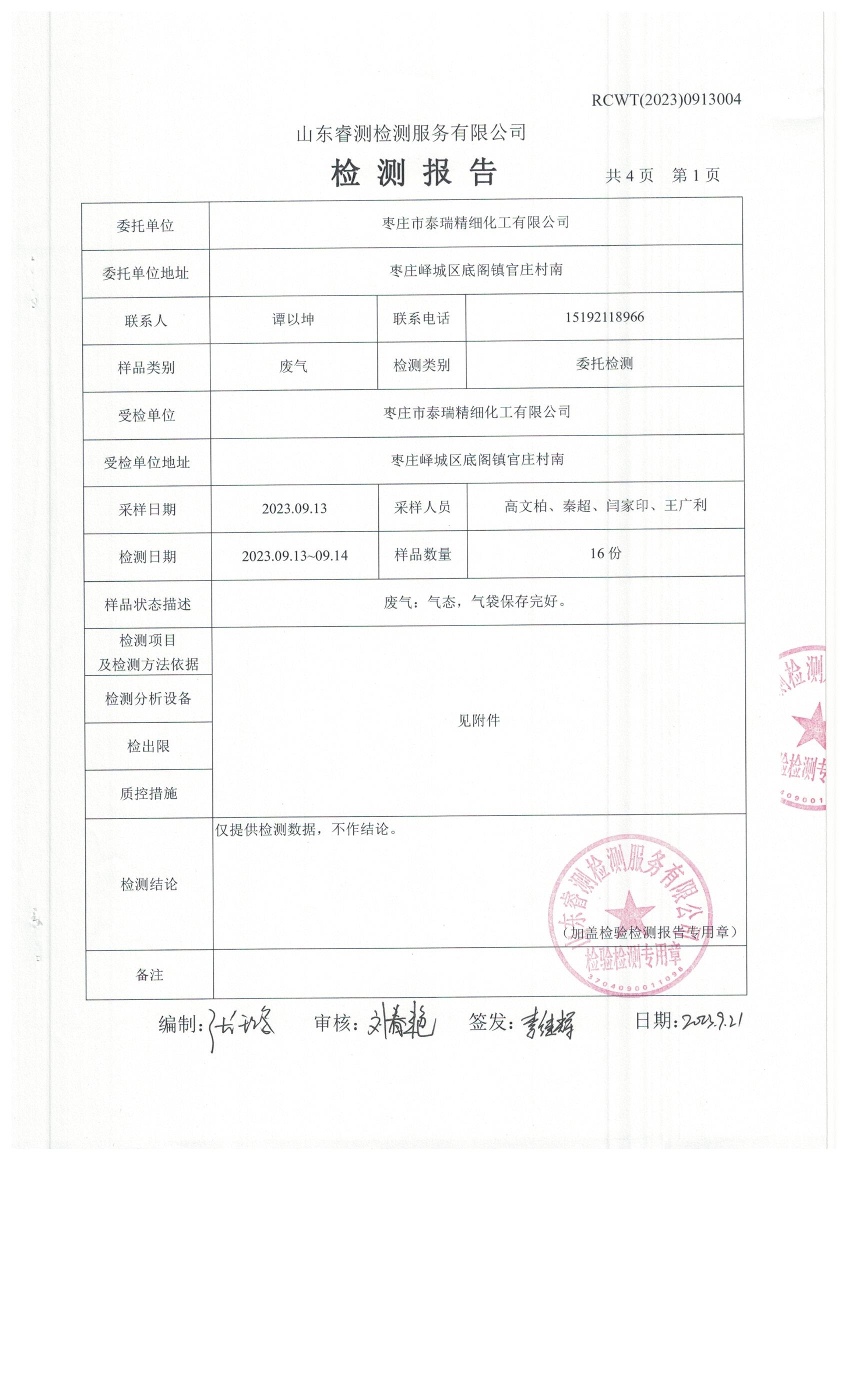 2023年第3季度(9月份)檢測報告