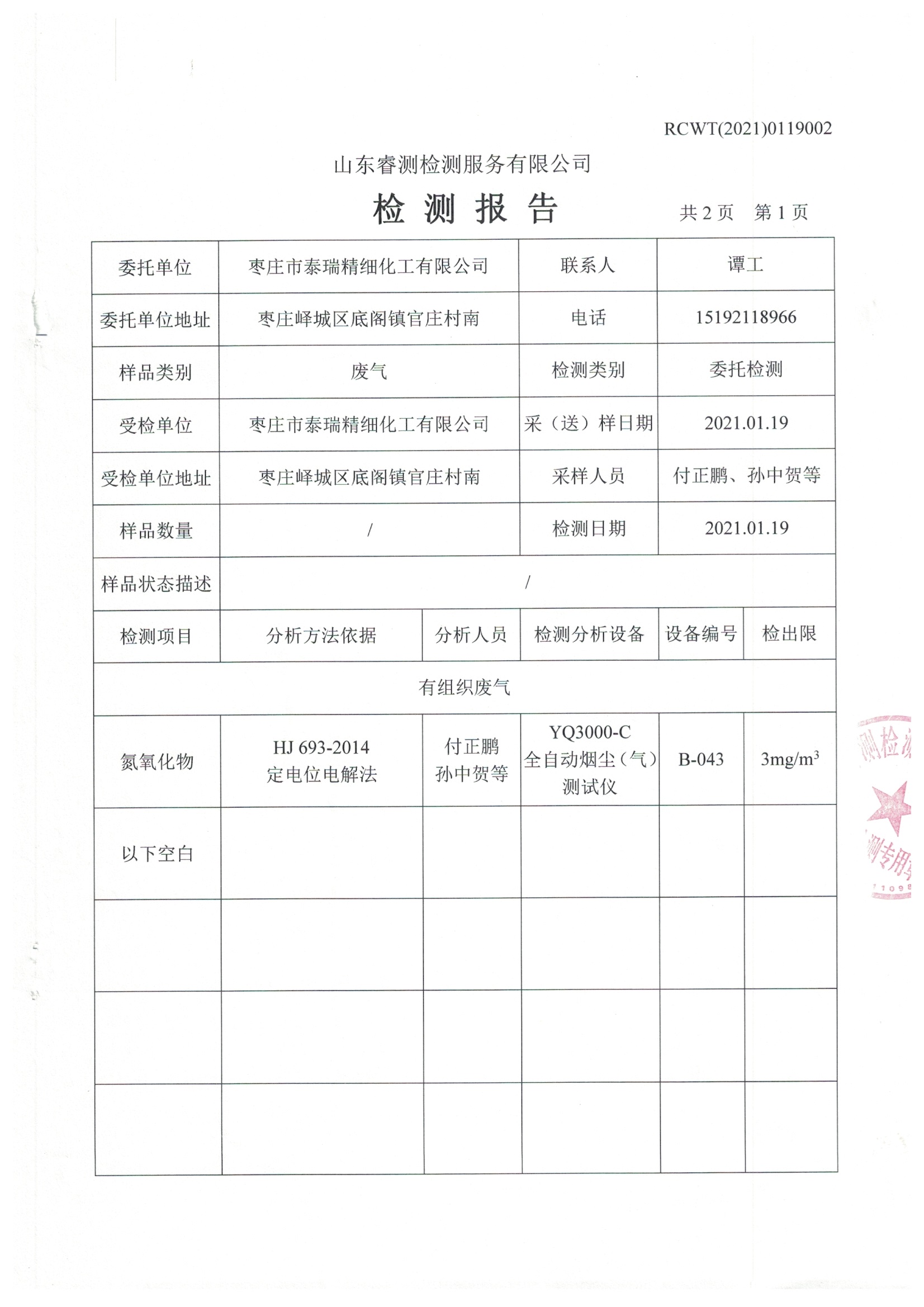 2021年1月份自行檢測(cè)報(bào)告
