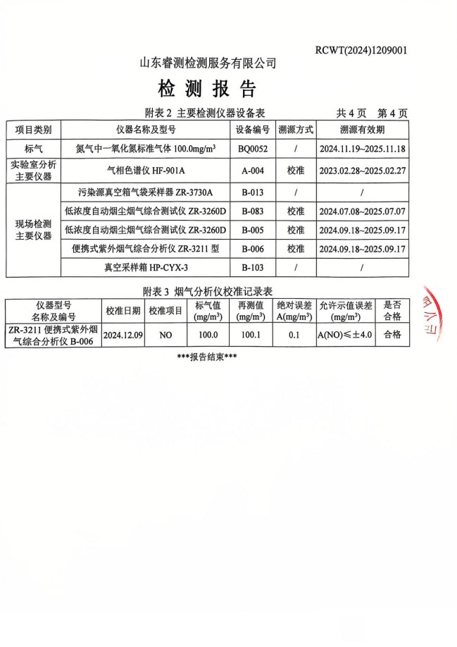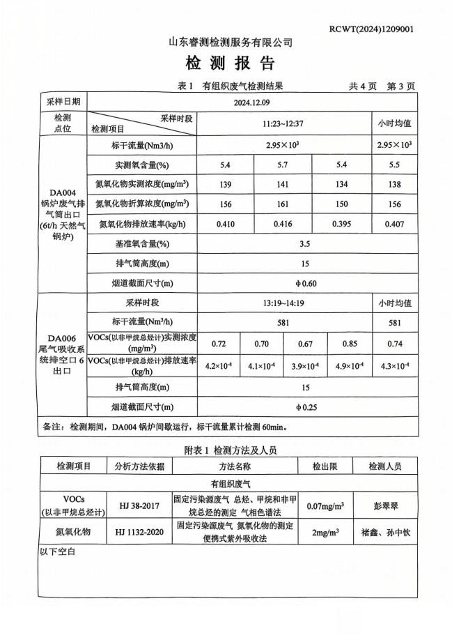 第四季度廢氣、噪音檢測(cè)報(bào)告