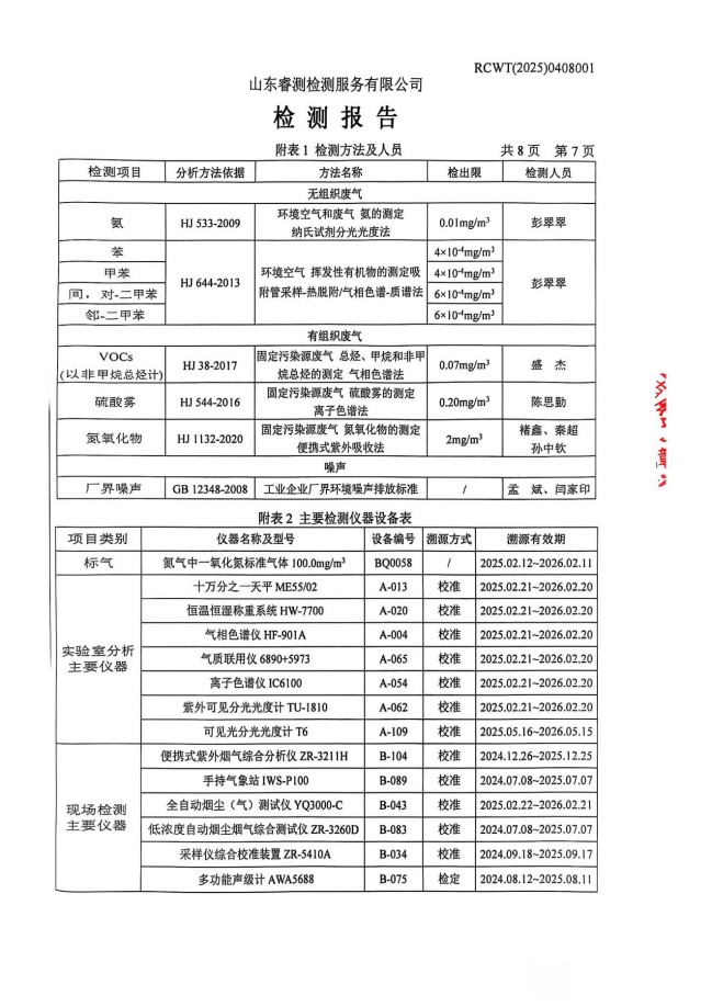 2025年4月廢氣、噪聲檢測(cè)報(bào)告