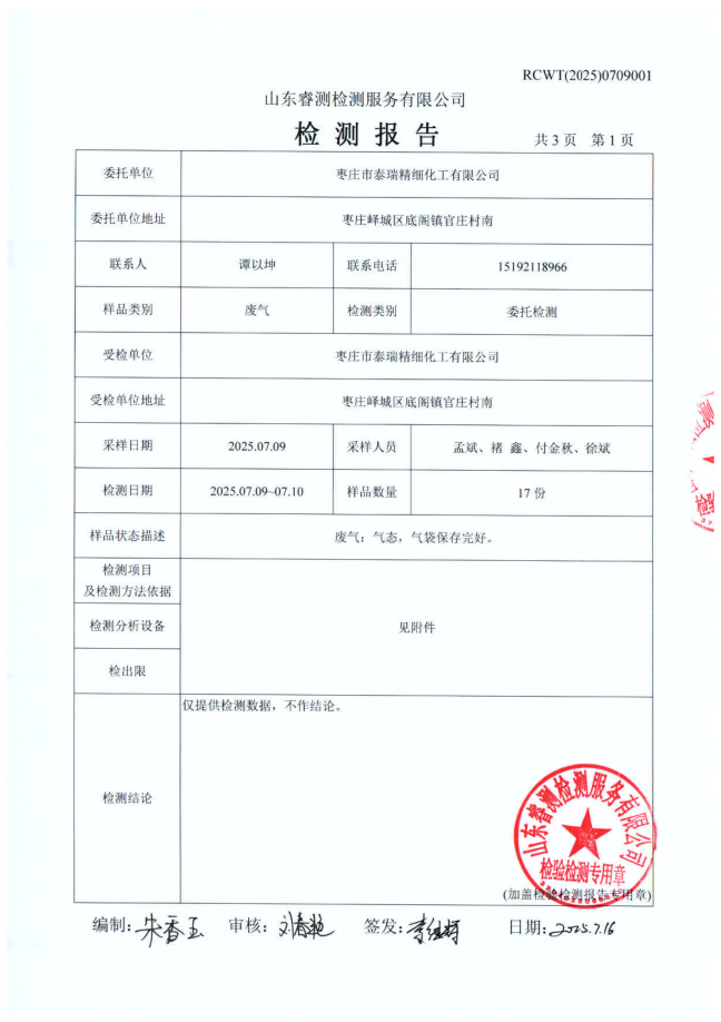 2025年泰瑞精細(xì)化工有限公司土壤檢測報(bào)告